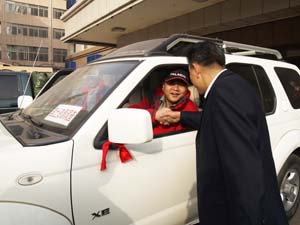 系上紅絲帶祈福平安順利 目 送