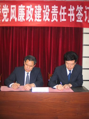 黨委負(fù)責(zé)人呂榮讓與下屬單位負(fù)責(zé)人簽訂黨風(fēng)廉政建設(shè)責(zé)任書(shū)