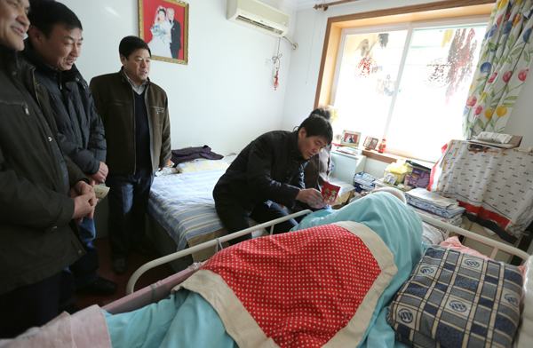 圖為在大病特困職工譚希倬家慰問