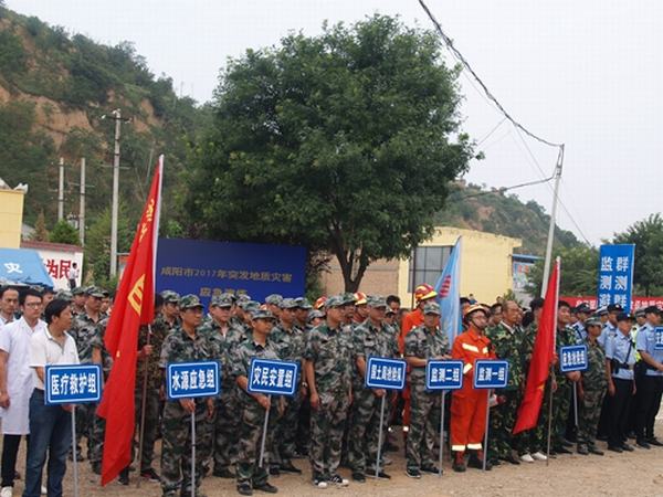 為了認(rèn)真貫徹落實(shí)《地質(zhì)災(zāi)害防治條例》,強(qiáng)化地質(zhì)災(zāi)害防治宣傳工作,提高群眾的防災(zāi)避險(xiǎn)意識(shí),鍛煉隊(duì)伍的快速反應(yīng)和協(xié)同作戰(zhàn)的救援能力。8月1日,咸陽(yáng)市應(yīng)急管理辦公室、咸陽(yáng)市國(guó)土資源局、彬縣人民政府在彬縣太峪鎮(zhèn)景村舉辦咸陽(yáng)市2017年突發(fā)性地質(zhì)災(zāi)害應(yīng)急演練,咸陽(yáng)支隊(duì)作為重要參與單位受邀承擔(dān)了現(xiàn)場(chǎng)災(zāi)情排查、監(jiān)測(cè)任務(wù)。本次演練還邀請(qǐng)到了省國(guó)土資源廳領(lǐng)導(dǎo)到場(chǎng)指導(dǎo),咸陽(yáng)市其他12個(gè)縣區(qū)國(guó)土資源局代表也前來(lái)觀摩、學(xué)習(xí)。咸陽(yáng)支隊(duì)長(zhǎng)邢憲龍?jiān)谛陆巴鈾z查工作期間也多次打電話密切關(guān)注演練的進(jìn)展情況,并囑咐大家要克服困難,集中精力,確保演練取得成功。