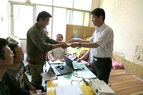 趙廷周對項目取得的成果表示肯定。當?shù)弥椖坎康?名成員有5名是工程師時,他說,早陽—茨溝金礦預查項目取得了重大找礦成果,得到了省上有關部門的認可,為下一步爭取省基金項目打下了基礎。在出成果的同時要早出人才,多出人才,這也符合集團公司的核心價值觀,就是讓每一位員工得到全面發(fā)展。你們就像找到的金礦一樣含金量很高,通過項目的實施提升業(yè)務水平和綜合能力,實現(xiàn)自我價值,成為區(qū)研院找礦的中堅力量。我代表集團公司黨委向你們表示慰問。他同時送上了慰問金。